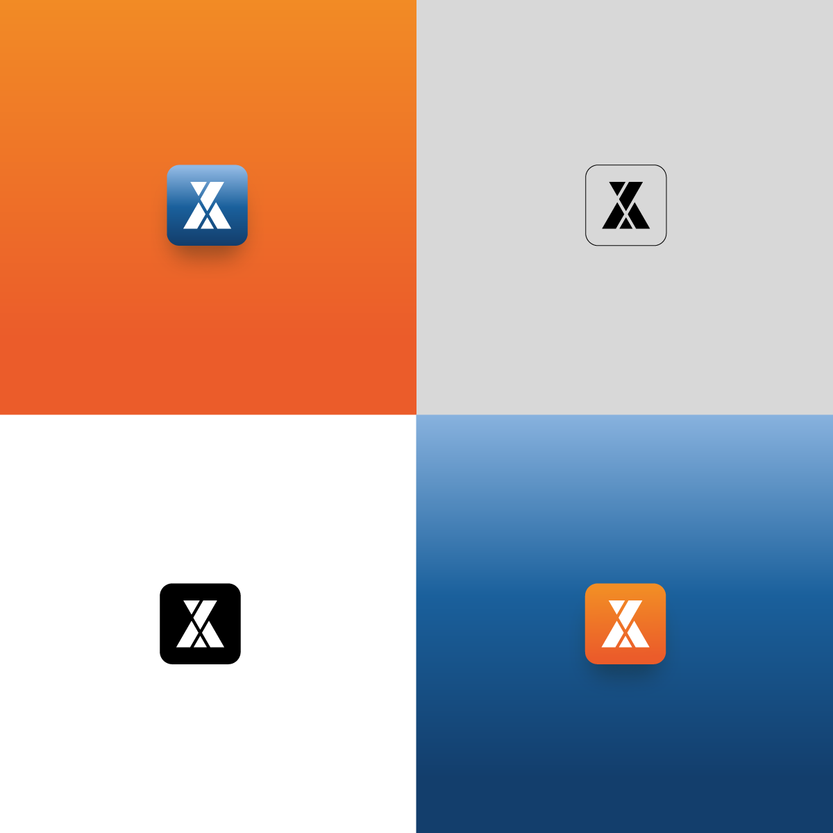 Ik heb de “X” gebruikt als basis voor het symbool. Hieruit heb ik een abstractie gemaakt waarbij de blauwe basis Auxility vertegenwoordigt, die de klant in het oranje ondersteunt met IT-ondersteuning. Dit vormt een brede, stevige basis om de samenwerking tussen Auxility en de klant te benadrukken.